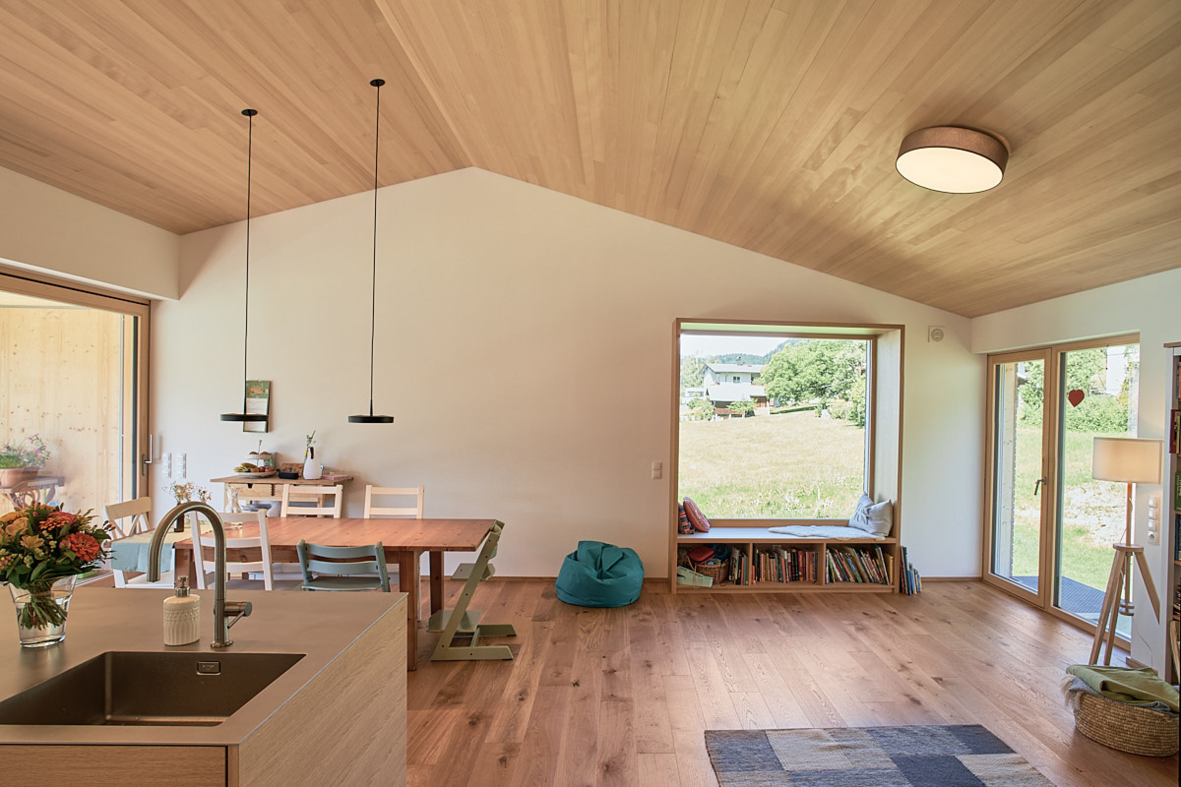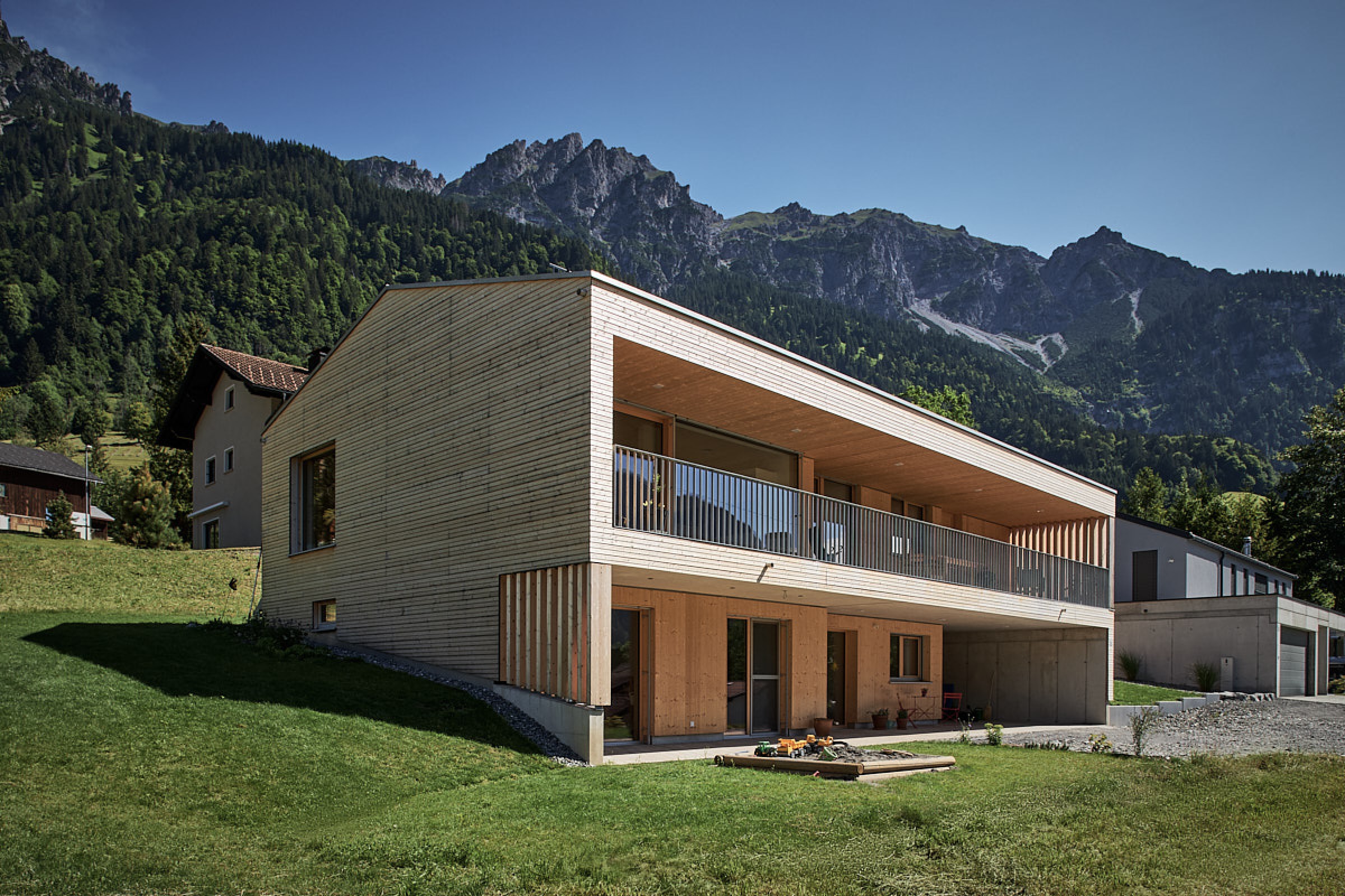 Das neu zu errichtende Einfamilienhaus wird in Hanglage errichtet. Das Eingangsniveau ist von Süden aus ebenerdig und wird in den Hang hinein gebaut. Das Obergeschoss mit einer großzügigen überdachten vorgelagerten Balkonebene wird in Holzbauweise errichtet. Eine Holzfassade bildet die optische Hülle des Gebäudes.
