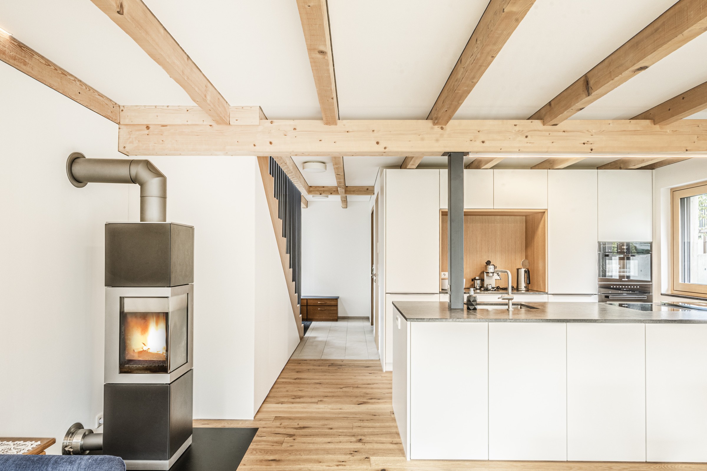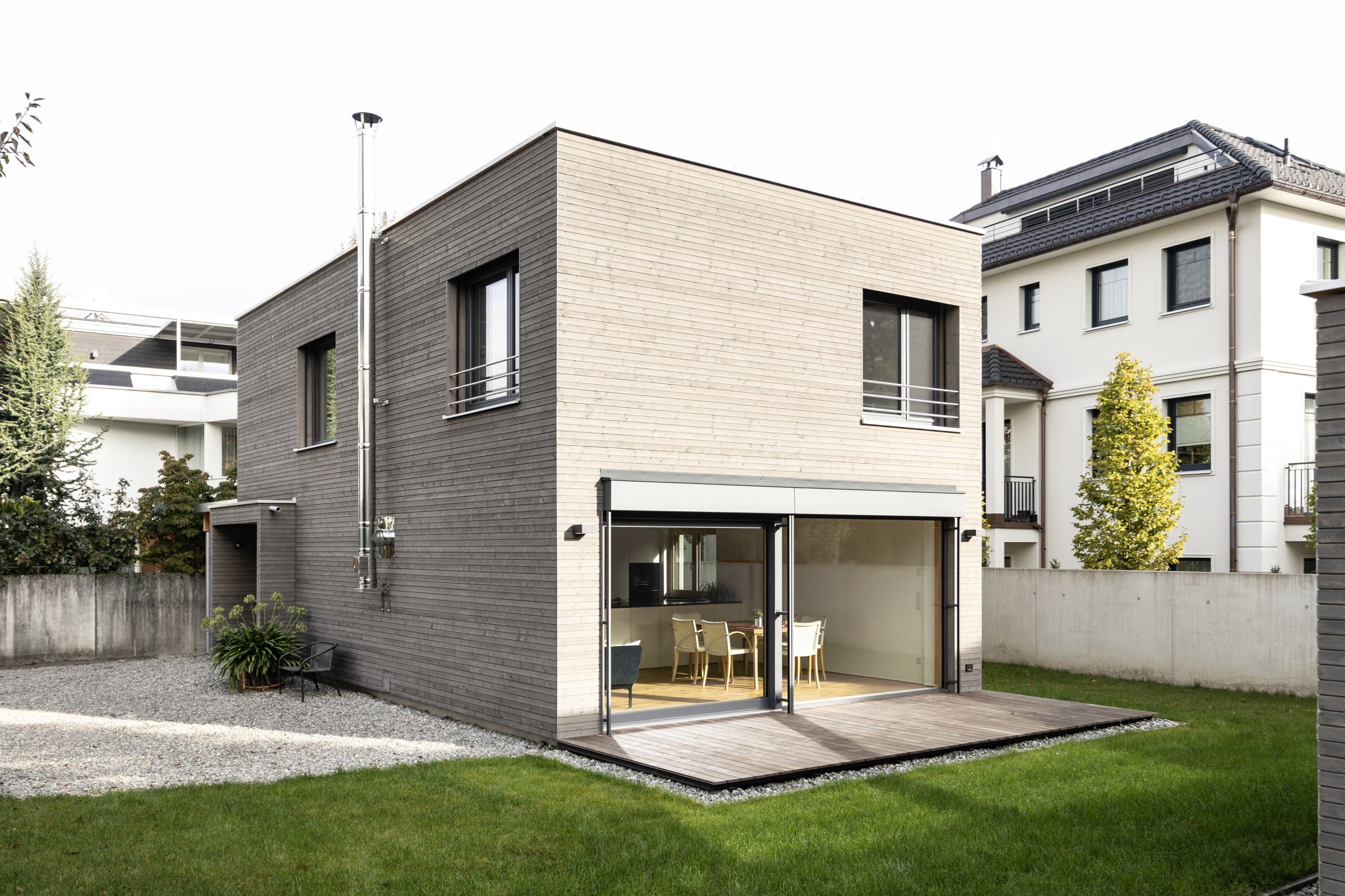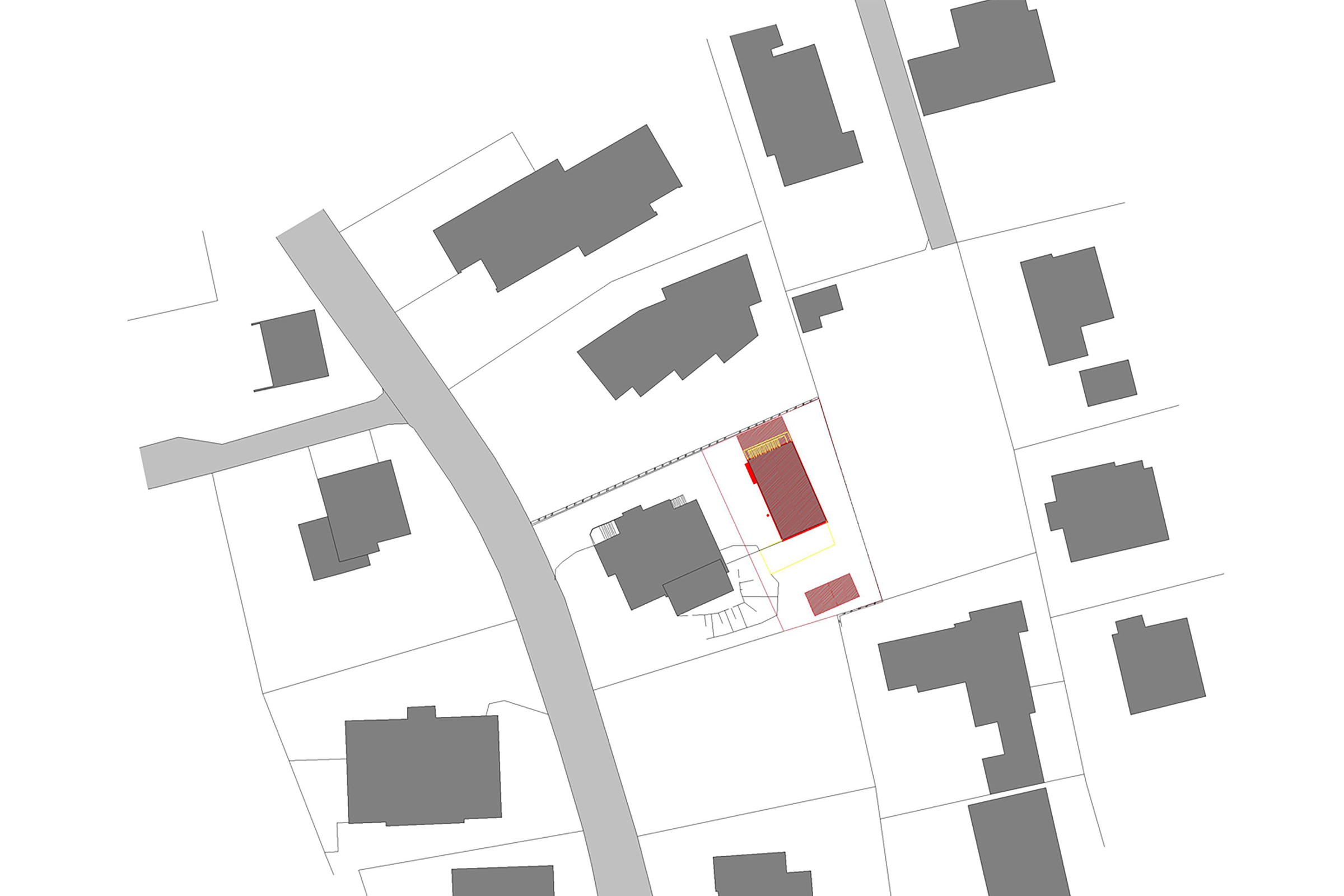 Das bestehende Gebäude wird als Garage und Werkstaft genutzt und soll zukünftig die Nutzung als kleines Einfamilienhaus erhalten. Die Kubatur bleibt unverändert, die bestehende Holzwand wird gedämmt, ein neuer Holzschirm bildet die Fassade. Die Anbauten aussen werden entfernt, damit die ursprüngliche Gebäude-form wieder in Erscheinung tritt. In Planung